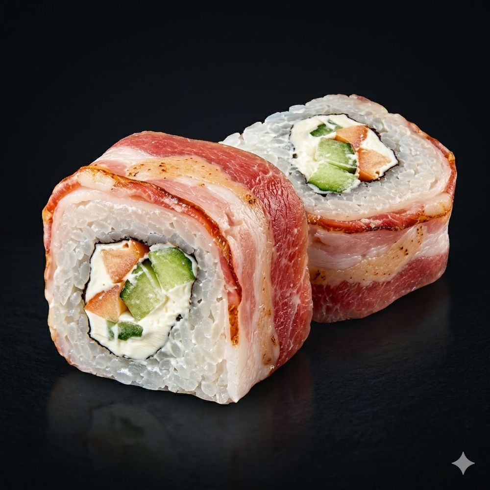 Рис, нори, сыр тв, куриное филе, бекон, соус спайси