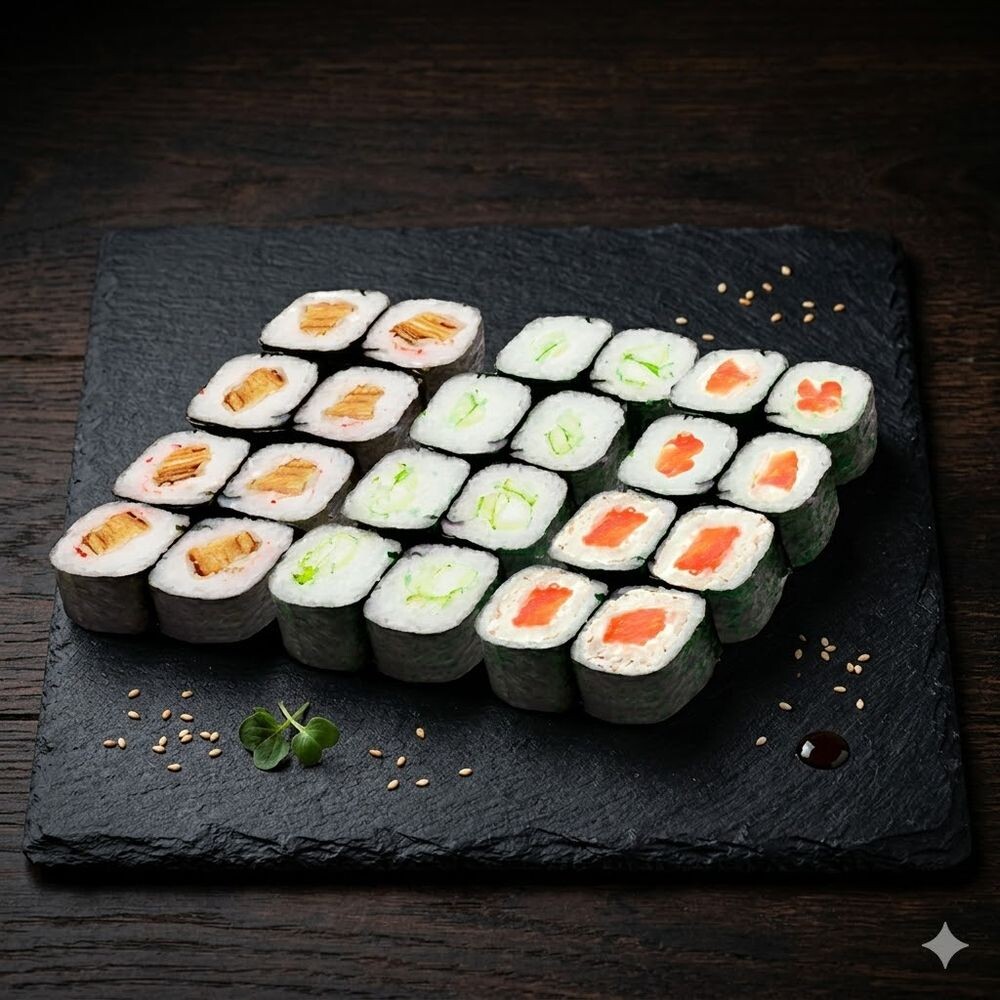 Макки с лососем, макки с огурцом, макки с томаго, макки с курицей